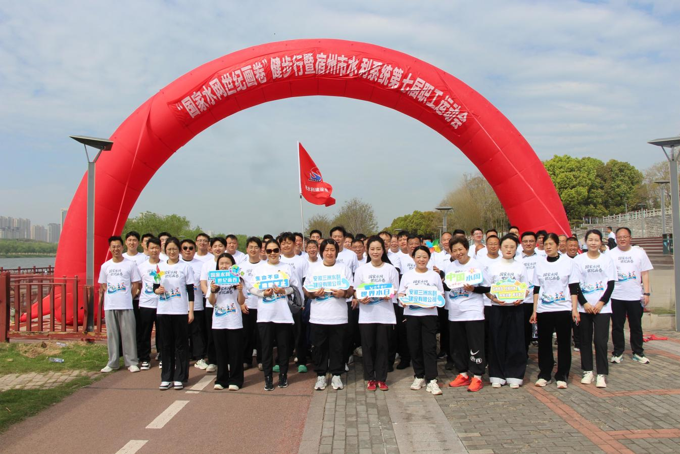 宿州市水利局以第七届职工运动会为契机,在风景秀丽的新汴河景区举办“国家水网,世纪画卷”健步走活动,局机关及直属单位参赛人员齐聚一堂,以健步践行初心,以实干彰显担当,共同感受宿州水利发展成果,凝聚奋进力量。
